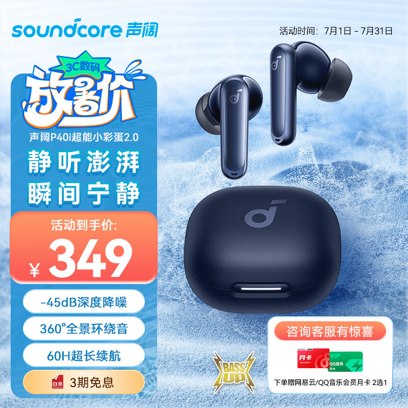 声阔P40i超能小彩蛋2.0升级降噪真无线蓝牙耳机TWS入耳式音乐游戏耳机6麦AI3D音效蓝色价格:349.00元!