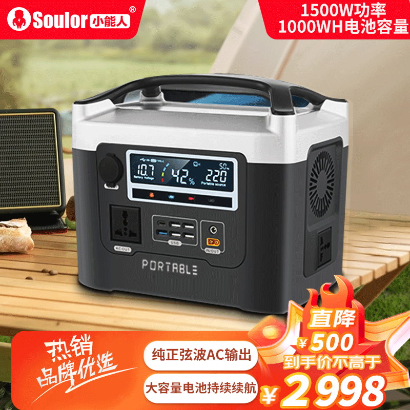 小能人户外电源1500W大功率大容量220V充电宝自驾露营停电应急汽车备用价格:3198.00元!