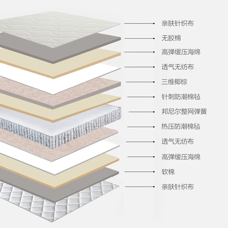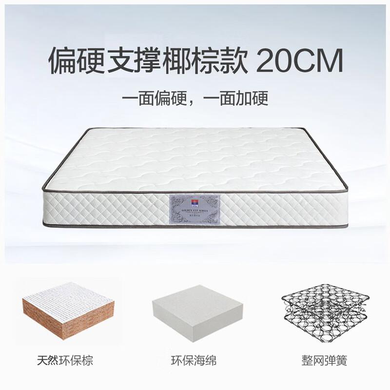 富安娜床垫 偏硬护脊椰棕床垫 席梦思防螨面料邦尼尔弹簧床垫子 1.5*2米价格:1109.00元!