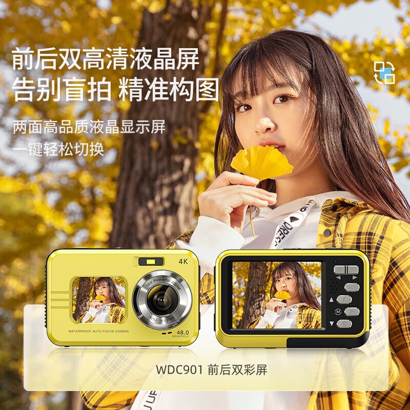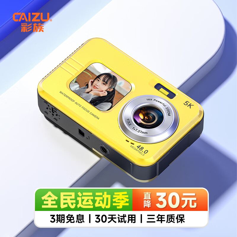 彩族(CAIZU) 4K学生数码相机防水相机前后双面屏幕自拍美颜4800万高清像素小巧便携对焦取代ccd儿童照相机 32G价格:499.00元!