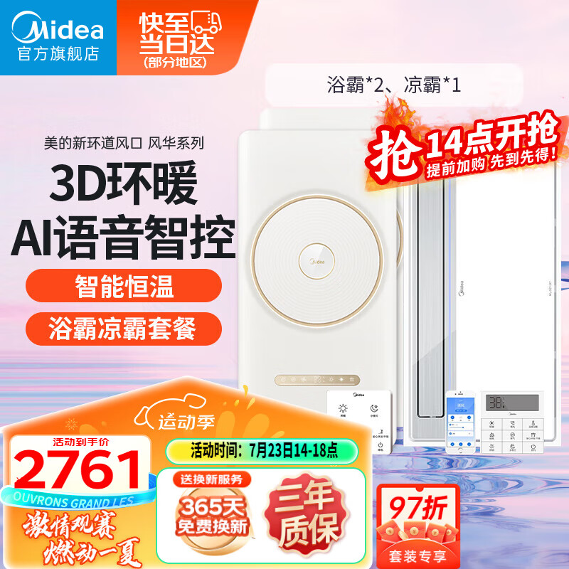 美的(Midea)风暖浴霸集成吊顶卫生间取暖器浴室环形智能双电机语音换气暖风机价格:2761.00元!