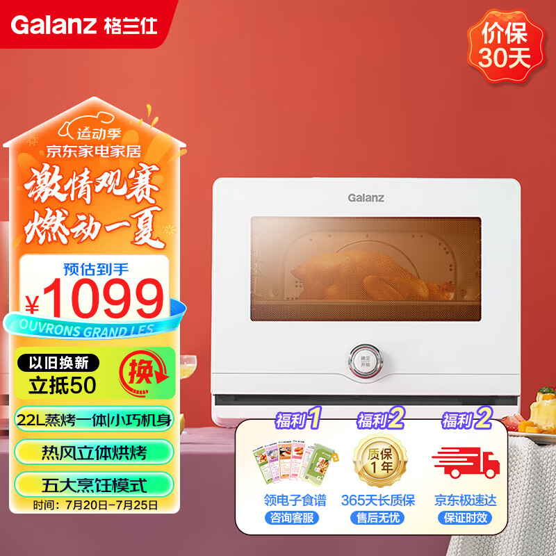 格兰仕(Galanz)电烤箱家用蒸烤箱22L多功能蒸烤一体机不锈钢内胆蒸箱烤箱二合一风炉烤箱5122RW价格:1099.00元!