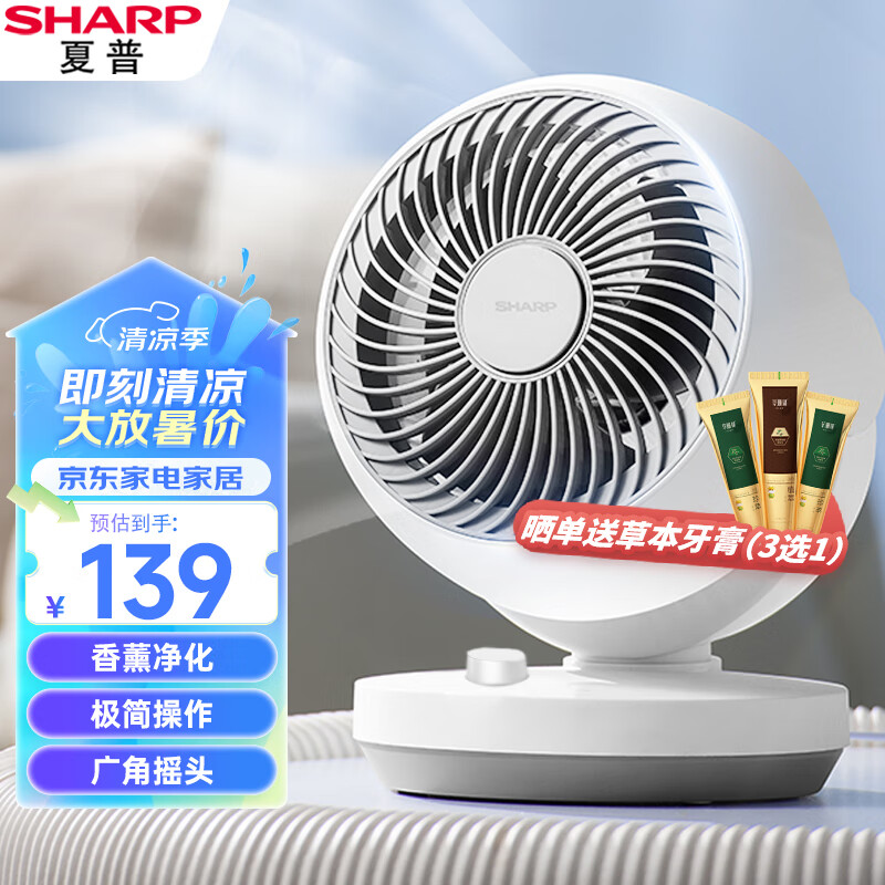 夏普(Sharp)电风扇/桌面空气循环扇/香薰小风扇/台式风扇/学生宿舍小型风扇多角度摇头轻音节能PJ-CA200B价格:169.00元!