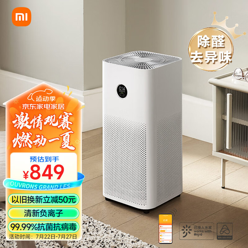 米家 小米空气净化器4 除甲醛除菌除异味 家用 除雾霾PM2.5 低噪设计 米家APP互联 AC-M16-SC价格:849.00元!