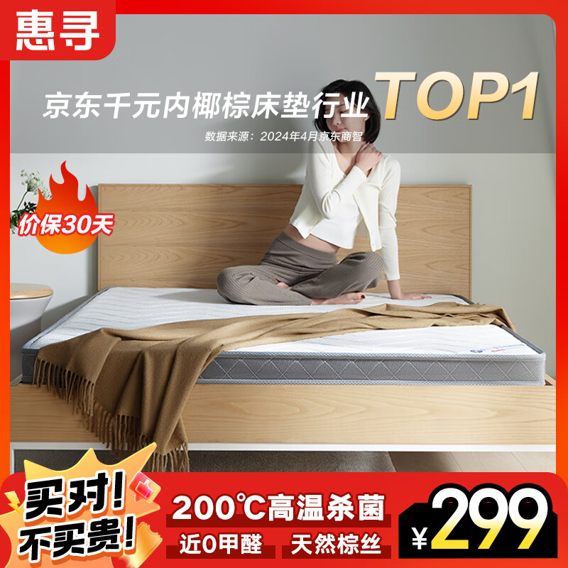 惠寻 京东自有品牌 椰棕床垫硬垫薄床垫偏硬无胶水1*1.9米10cm厚折叠价格:329.00元!