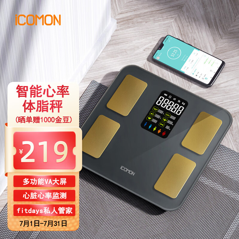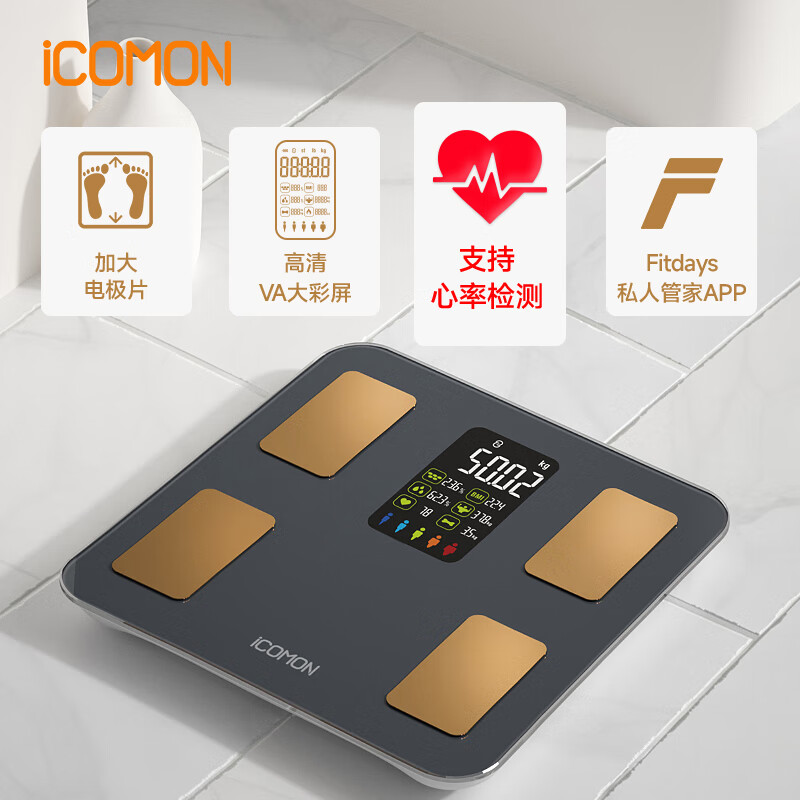沃莱(ICOMON)体脂秤智能心率电子体重秤全家人体用APP自测数据健康检测体测仪精准数据减肥专用脂肪秤价格:219.00元!