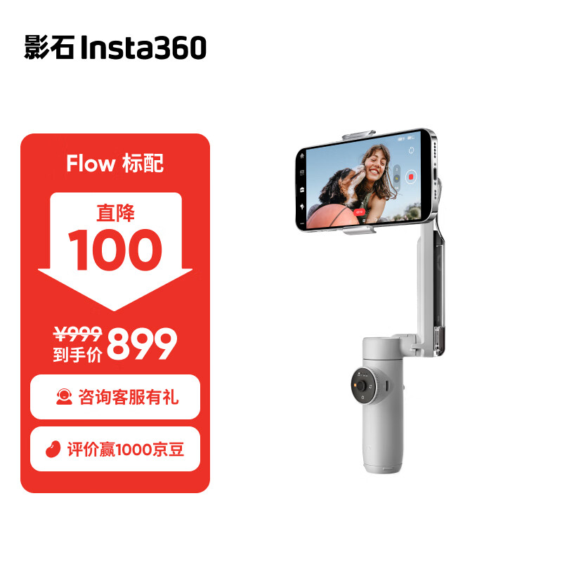 影石(Insta360)Flow手机云台稳定器 可折叠可伸缩自拍杆智能跟随三轴增稳防抖vlog直播神器手持稳定器灰色价格:899.00元!