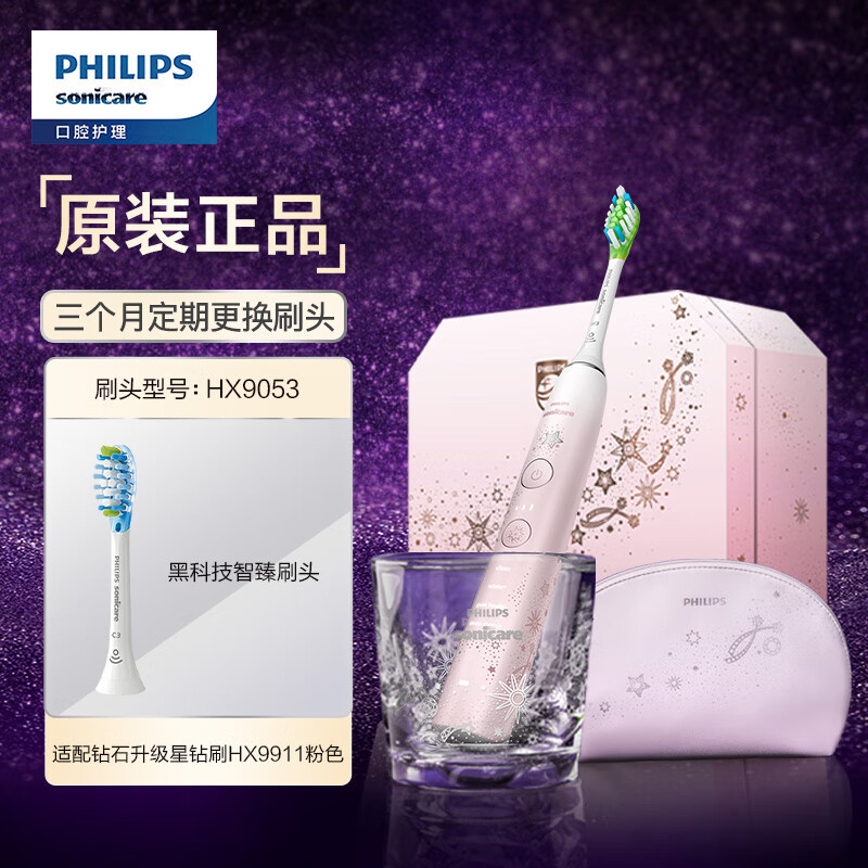 飞利浦(PHILIPS)电动牙刷成人 七夕礼物送男友/女友礼物 10倍清除牙菌斑 1支刷头 钻石9系Pro礼盒 樱花粉价格:1359.00元!
