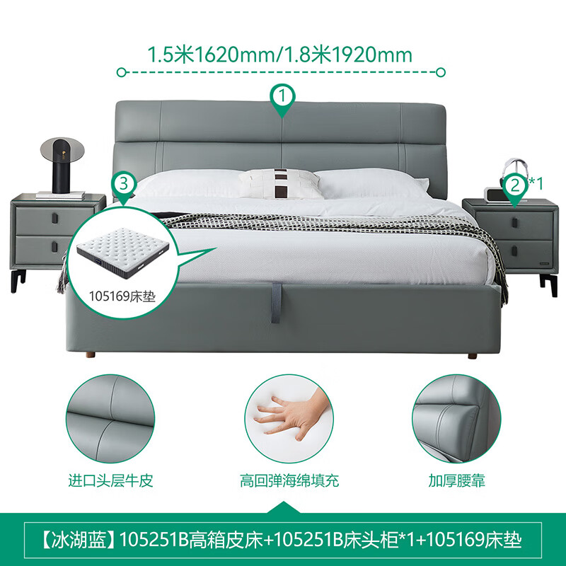 全友家居 真皮艺床头层牛皮现代简约主卧室双人大床高箱储物床105251价格:6212.86元!