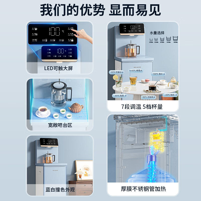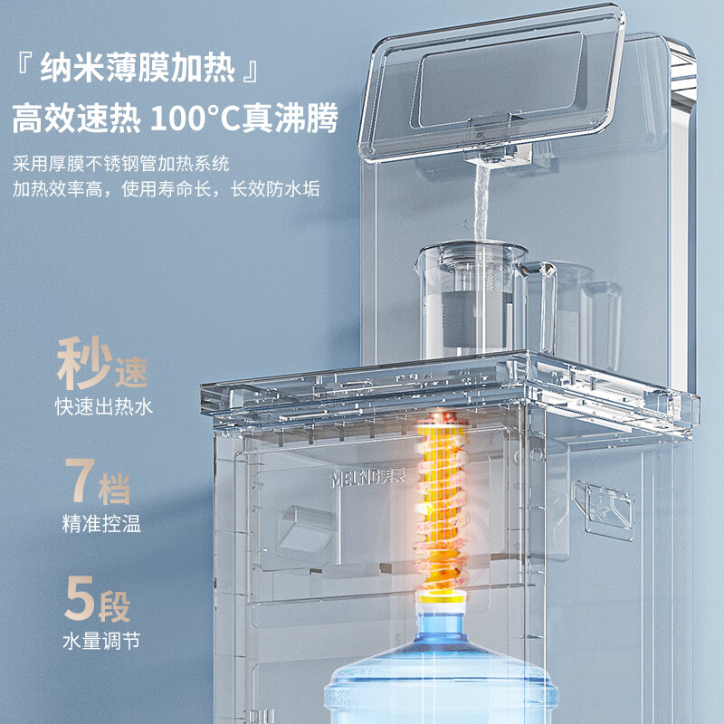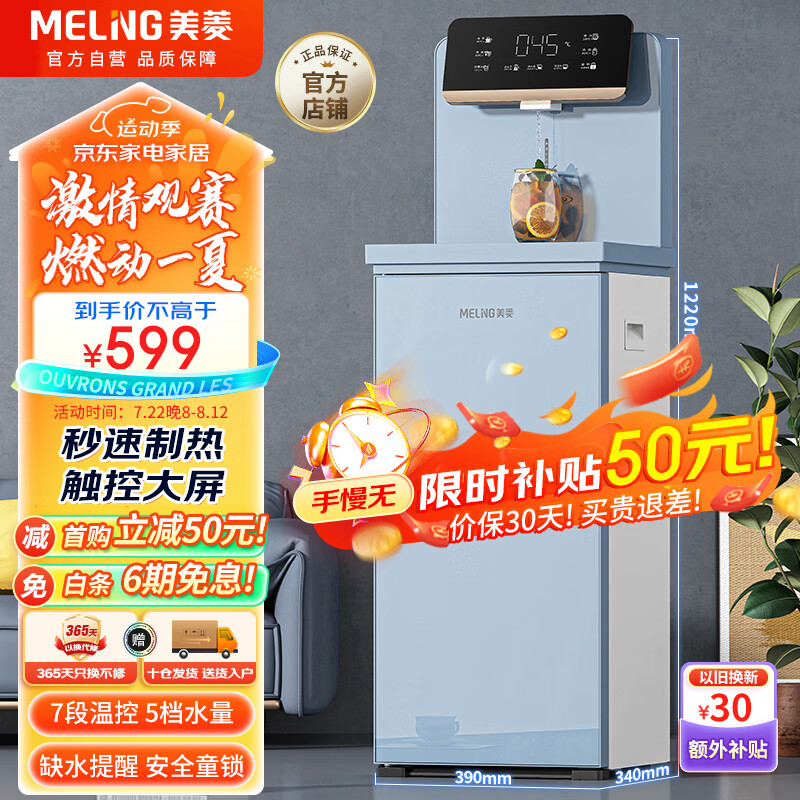美菱(MeiLing)即热式茶吧机家用饮水机全自动上水智能触控大屏下置式桶装水高端大款立式温热款MY-CS516价格:699.00元!