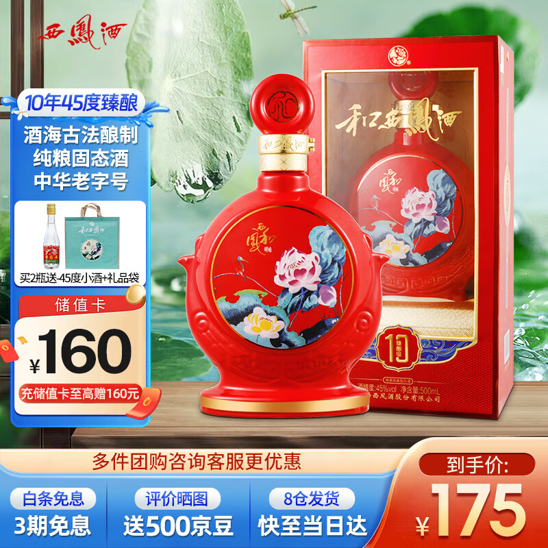 西凤酒 10年45度和系列陕西纯粮凤香型白酒婚庆喜宴请送礼盒装500mL*1价格:175.00元!
