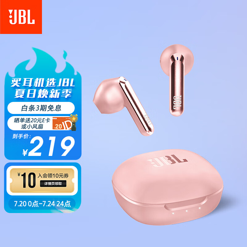 JBL T280TWS X2 真无线蓝牙耳机 半入耳音乐耳机 通话降噪运动防汗 苹果安卓小米带麦游戏耳机 樱花粉价格:239.00元!