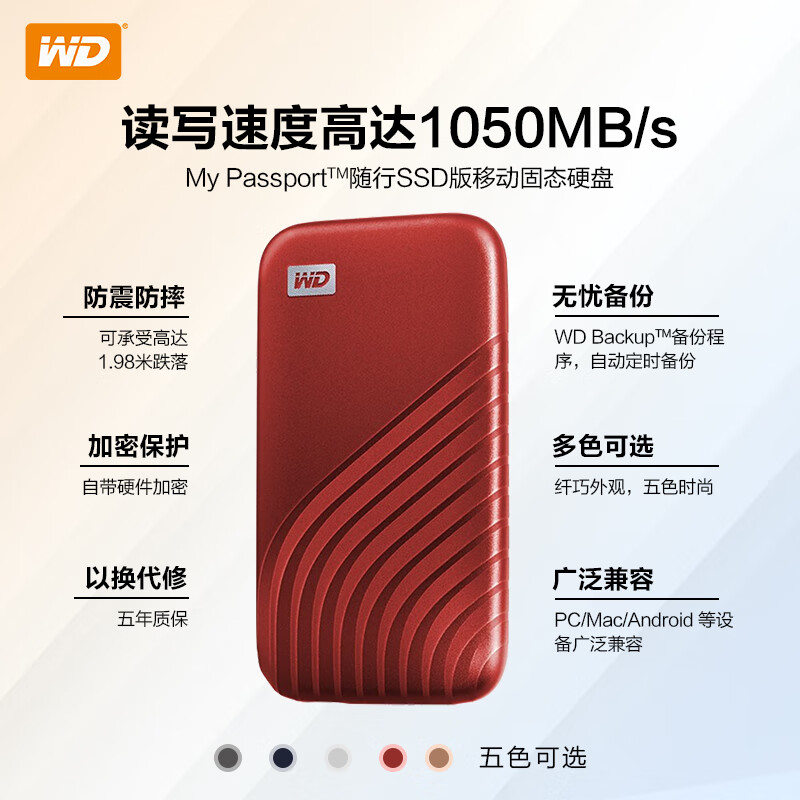 西部数据(WD)2TB NVMe 移动固态硬盘(PSSD)My Passport随行SSD type-c接口 1050MB/s 手机直连笔记本两用价格:1199.00元!