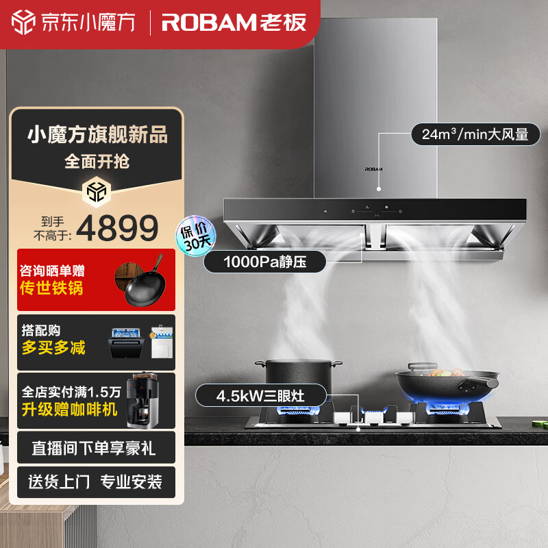 老板(Robam)抽油烟机D3S欧式顶吸双腔变频24大风量家用燃气灶吸油烟机灶具套装60D3S+39B1A套装(天然气)价格:4899.00元!
