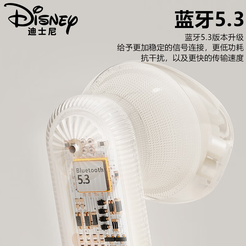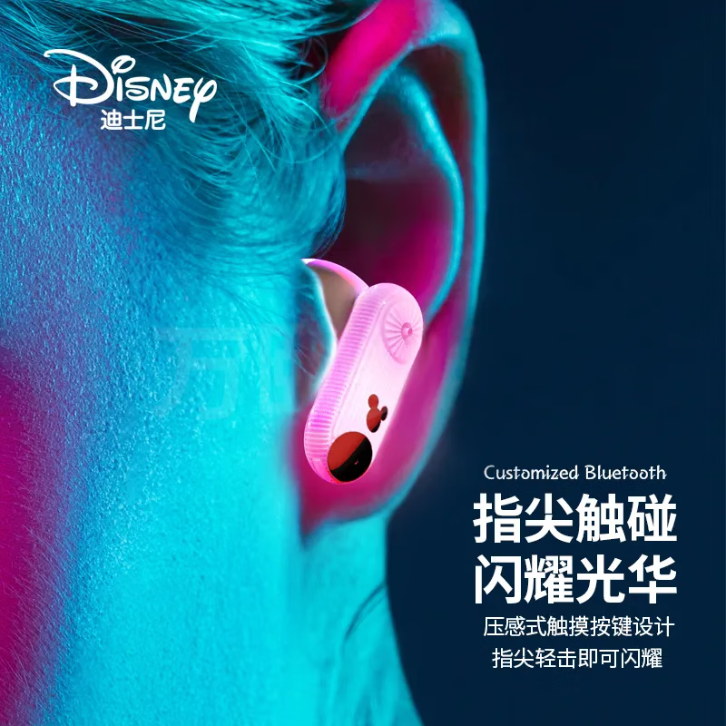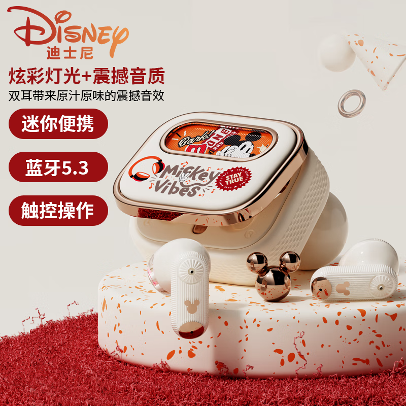 迪士尼(DISNEY)无线蓝牙耳机半入耳式女生颜值生日闺蜜礼物炫彩灯光智能降噪适用于苹果华为 Q9 米白色价格:229.00元!