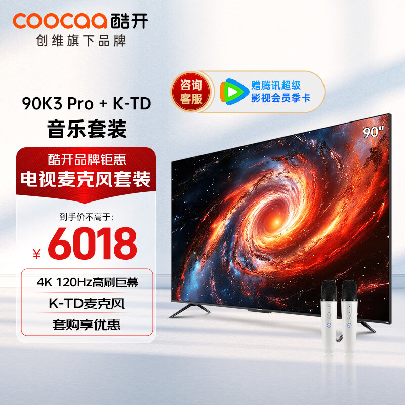 酷开创维 90英寸高刷电视机K3 Pro+K-TD麦克风套装 K歌电视 家庭KTV无线降噪话筒唱歌会议 双支麦克风价格:6018.00元!