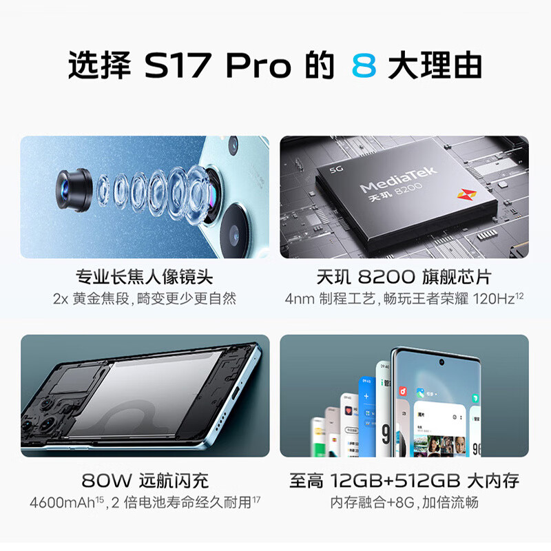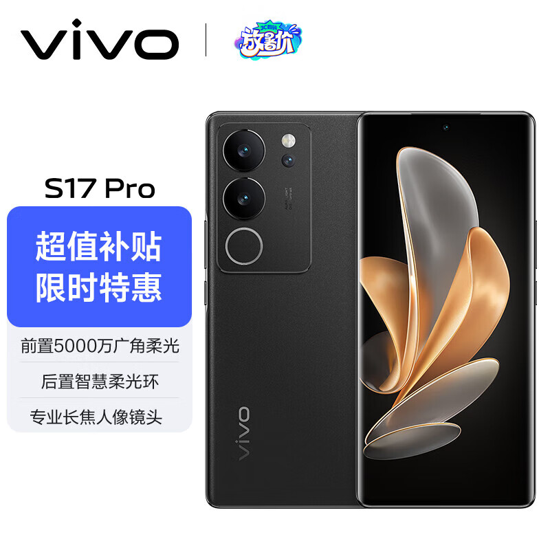 vivo S17 Pro 12GB+512GB 玄黑 前置5000万广角柔光 专业长焦人像镜头 天玑8200芯片 快充 拍照 手机价格:2399.00元!