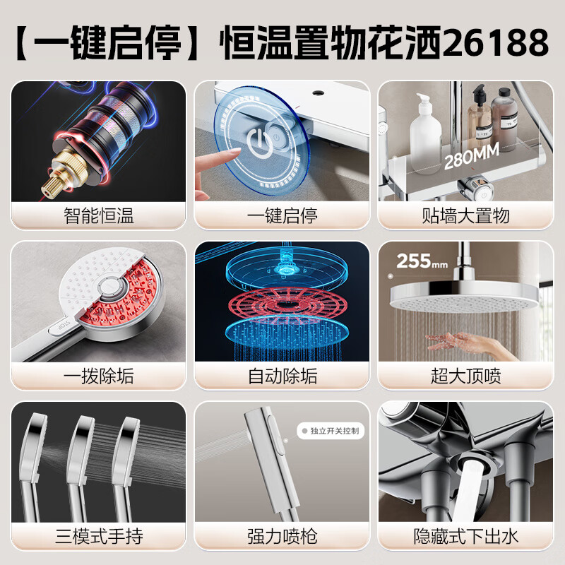 九牧(JOMOO)花洒全套淋浴套装大置物恒温除垢喷枪淋浴器26188-768/1B-1价格:1399.00元!