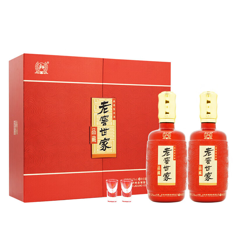 泸州老窖 老窖世家品藏 浓香型白酒 52度500ml*2瓶礼盒装 节日送礼价格:159.00元!