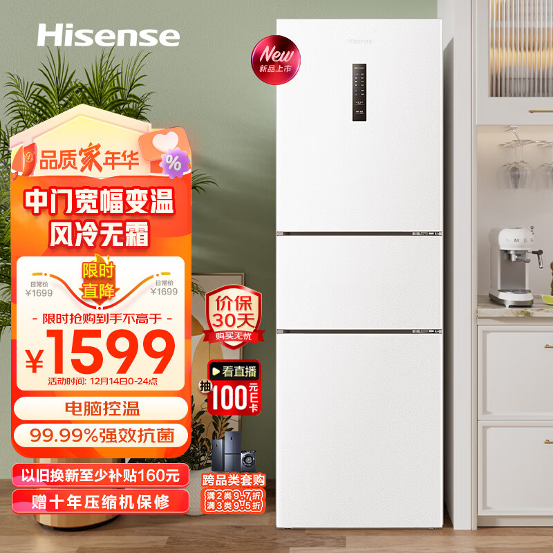 海信(Hisense)小冰箱小型家用 三开门白色电冰箱 221升 净味低音节能省电 风冷无霜 小户型租房用BCD-221WYK1D价格:1598.00元!