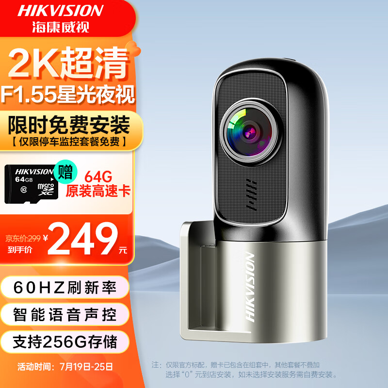 HIKVISION海康威视行车记录仪D1Pro 1440P高清星光夜视F1.55光圈语音声控价格:269.00元!