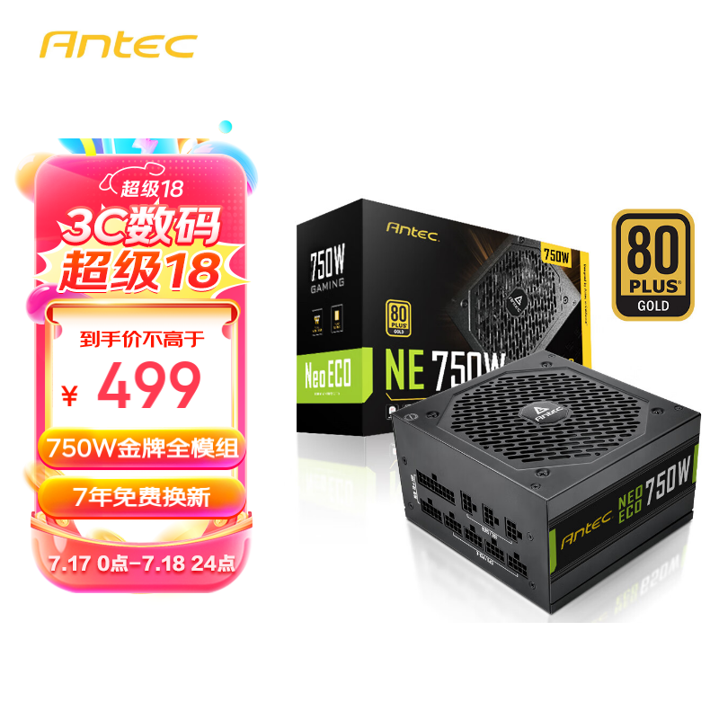 安钛克 Antec NE750金牌全模组/全日系电解电容/寿命更持久/支持风扇启停/双8pin电脑主机电源750W价格:476.00元!