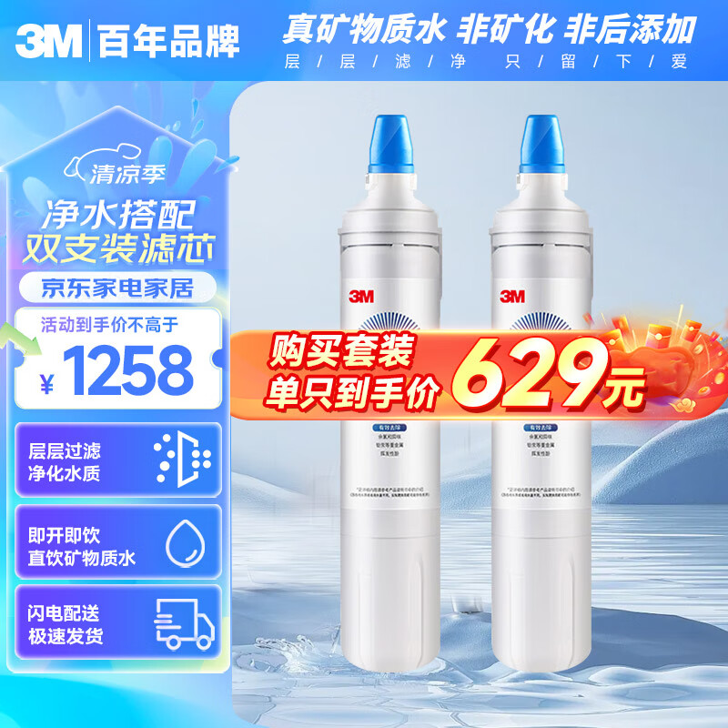 3M净水器家用净水机原装替换滤芯 CDW7101V-C滤芯两只装(本品*1+附件*1共计两只)价格:1398.00元!