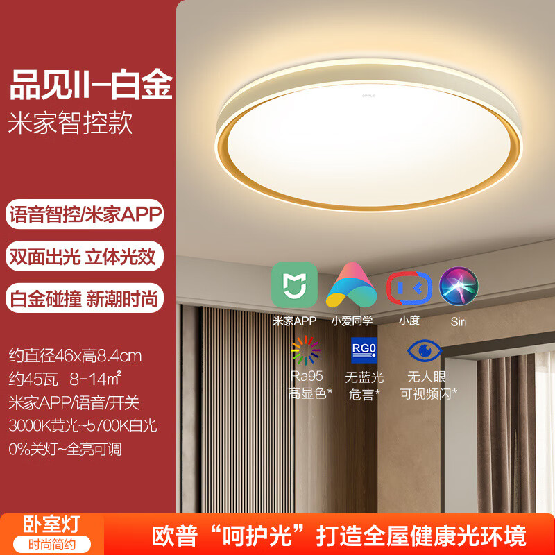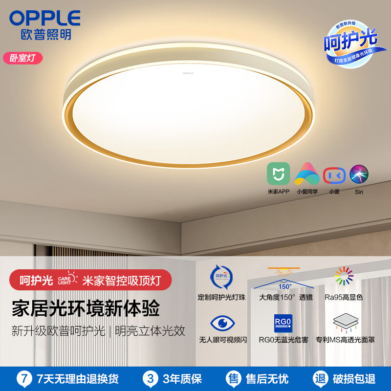 欧普照明(OPPLE) 吸顶灯客厅卧室灯智控调光LED照明灯具品见 呵护光价格:465.00元!