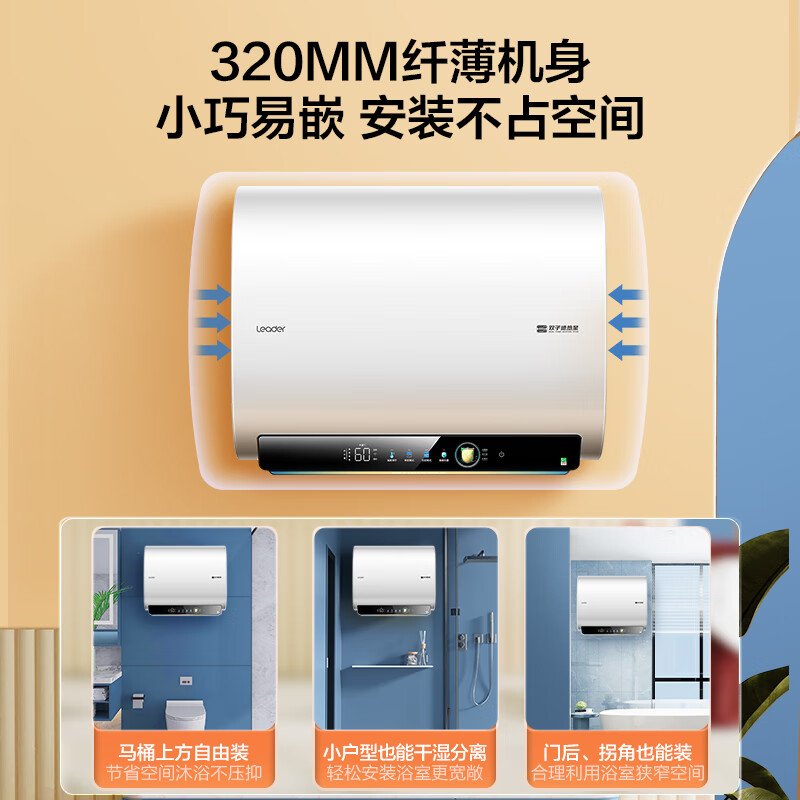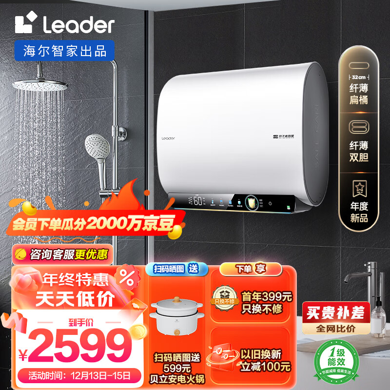 海尔(Haier)海尔出品统帅电热水器80升小仙镜扁桶3300W一级能效镁棒免换 纤薄双胆 LEC8003HD-F5白U1价格:2799.00元!
