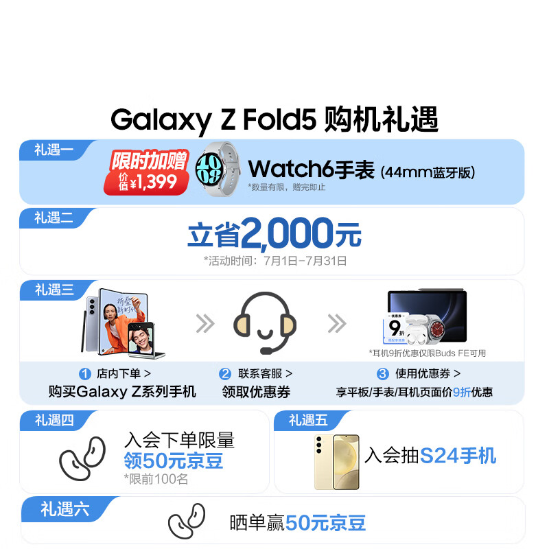 三星(SAMSUNG)Galaxy Z Fold5 AI手机 超闭合折叠手机 同声翻译 智能修图摄像 12GB+512GB 宇夜黑 5G折叠屏手机价格:10999.00元!