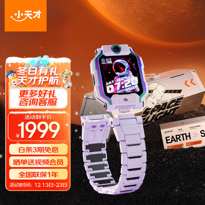 小天才儿童电话手表Z9航天定制款礼盒 体温监测智能手表 学生儿童4G视频拍照双摄定位手表手机男女孩豆蔻紫价格:1999.00元!
