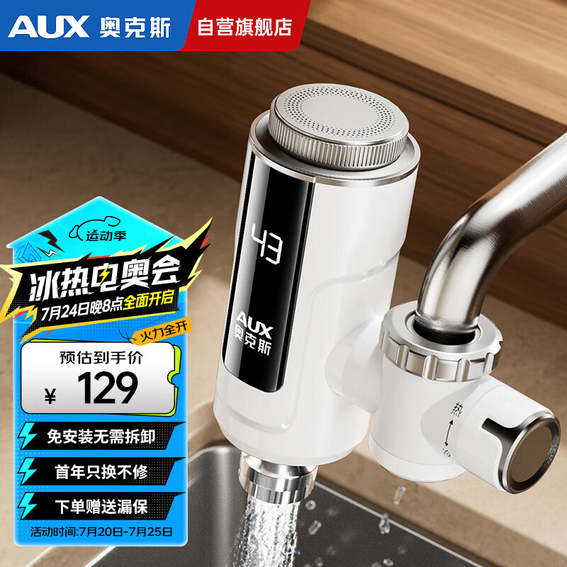 奥克斯电热水龙头即热式加热器快速加热免安装冷热厨房宝电热水器STJ1接驳式白加漏保价格:128.00元!