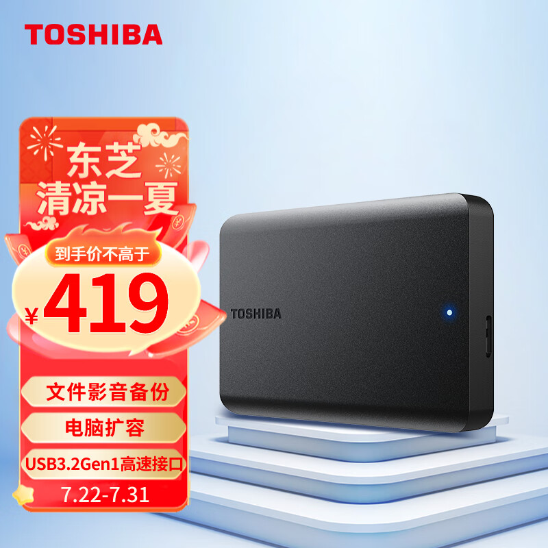 东芝(TOSHIBA)1TB 移动硬盘机械 新小黑A5 USB3.2 Gen 1 2.5英寸 兼容Mac 数据存储 轻薄便携 高速传输价格:389.00元!