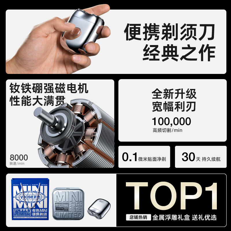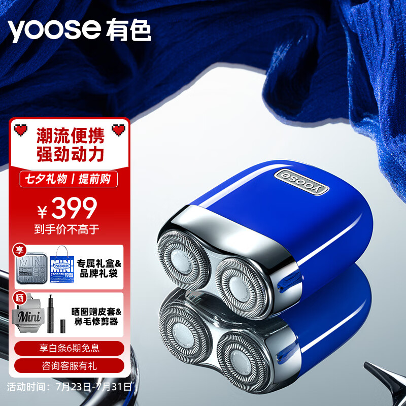 有色(yoose)电动剃须刀 迷你便携合金刮胡刀 父亲节礼物 生日礼物送男友老公 MINI 2.0 克莱因蓝价格:599.00元!
