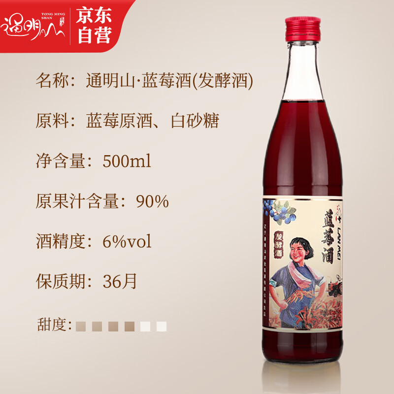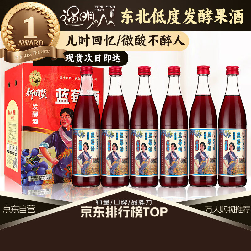 通明山老味道 蓝莓酒 6度 果酒礼盒 500ml*6瓶整箱 低度微醺中秋送礼价格:79.80元!