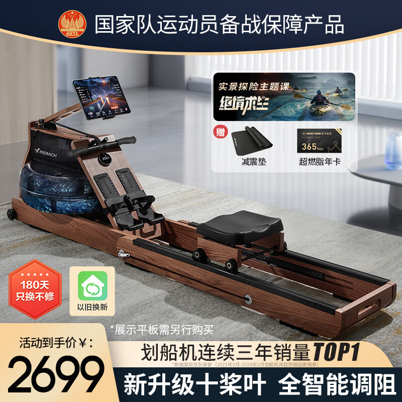 麦瑞克(MERACH)划船机家用水阻磁控运动健身器材智能调节阻力可折叠 MR-950R5ZH价格:2699.00元!