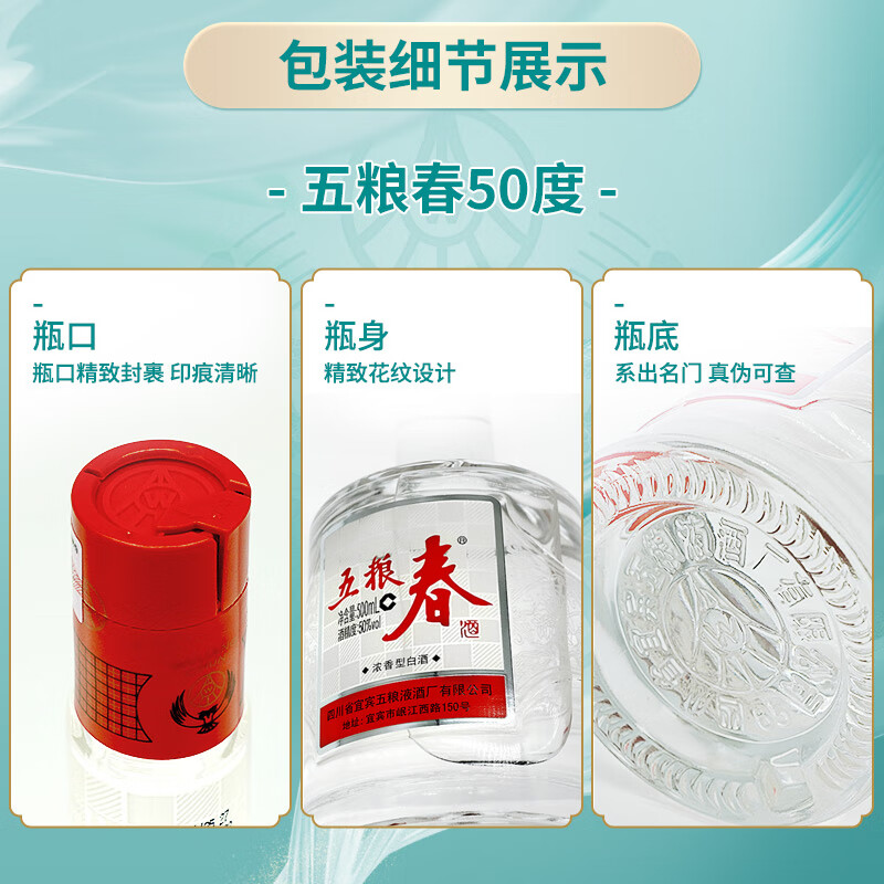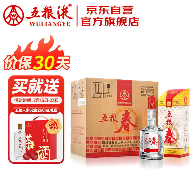 五粮液股份 五粮春 浓香型白酒 50度 500ml*6瓶 整箱装 中秋送礼价格:1296.00元!