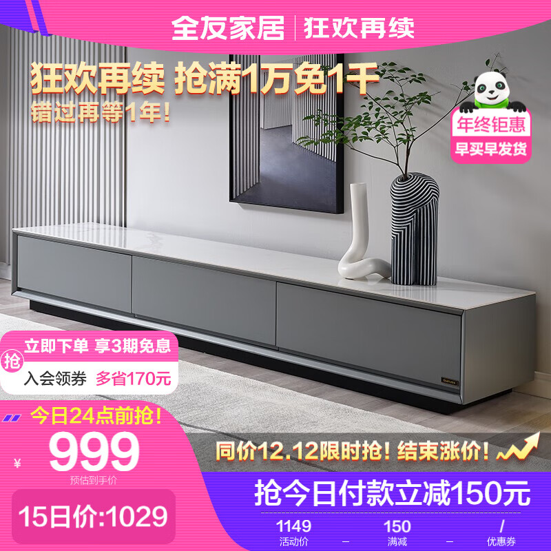 全友家居 电视柜大小户型岩板收纳储物柜子现代客厅家具DW1055价格:1149.00元!