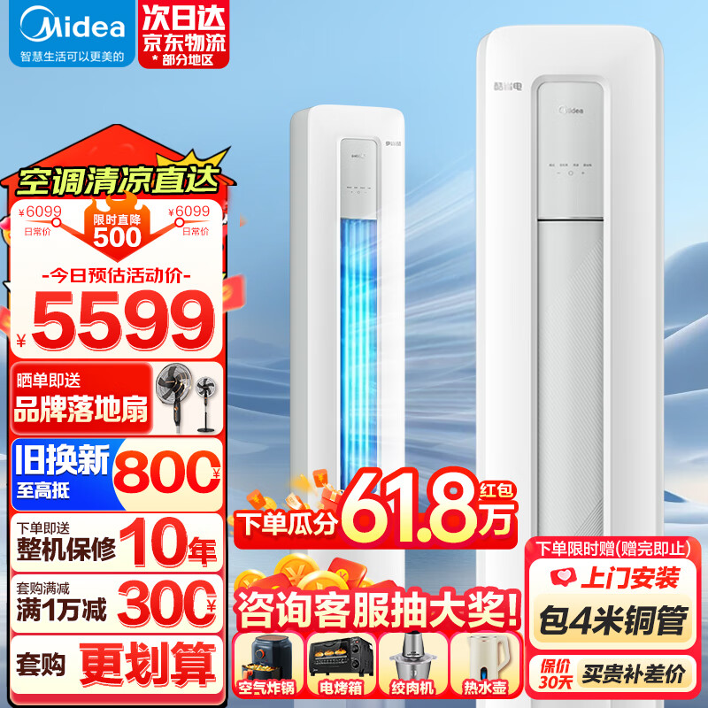 美的(Midea)3匹 酷省电 新一级能效 变频冷暖 客厅空调立式 空调柜机 KFR-72LW/N8KS1-1 多仓直发价格:5599.00元!