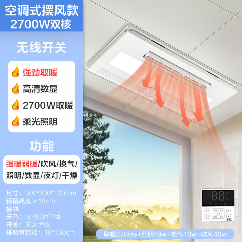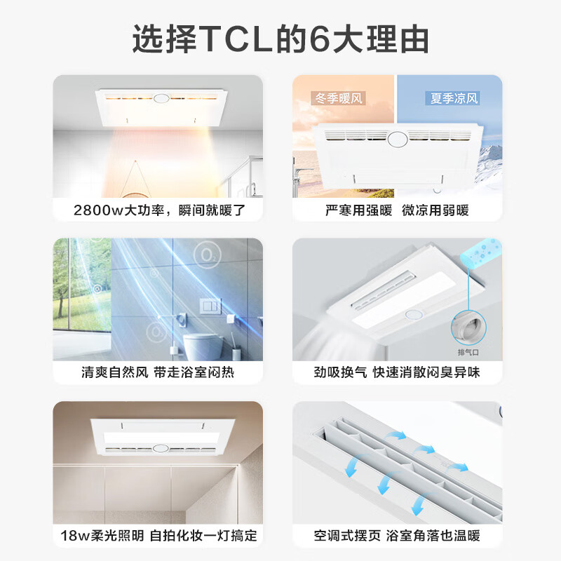 TCL浴霸浴室暖风照明排气一体无线遥控八合一卫生间取暖器价格:699.00元!