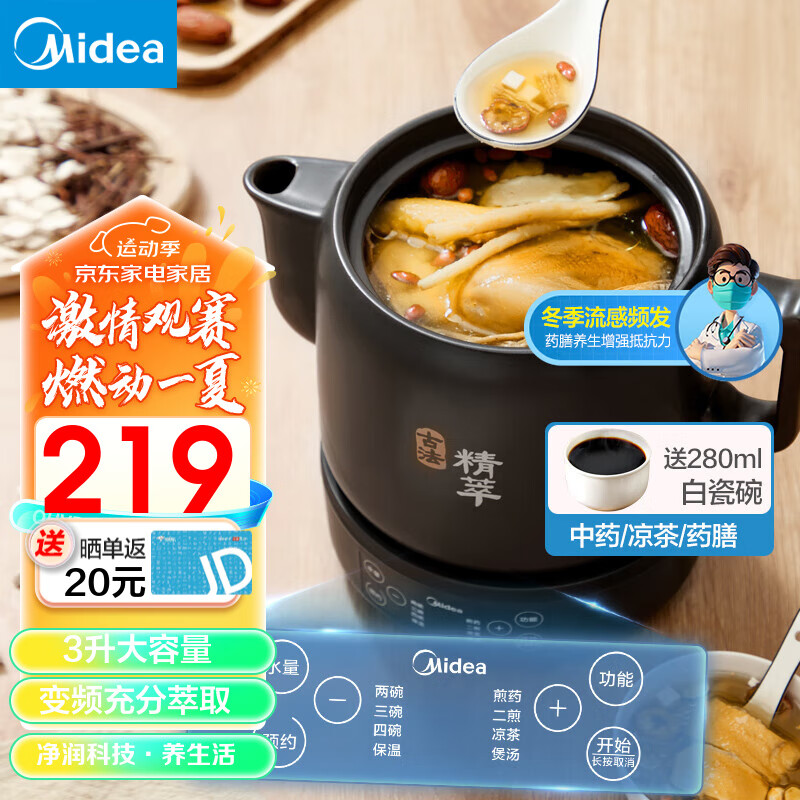 美的(Midea)煎药壶 分体式大容量 养生壶全自动 带瓷碗智能陶瓷熬中药壶熬药电砂锅药罐药膳中药煲 3L大容量分体式 JYC3002价格:279.00元!