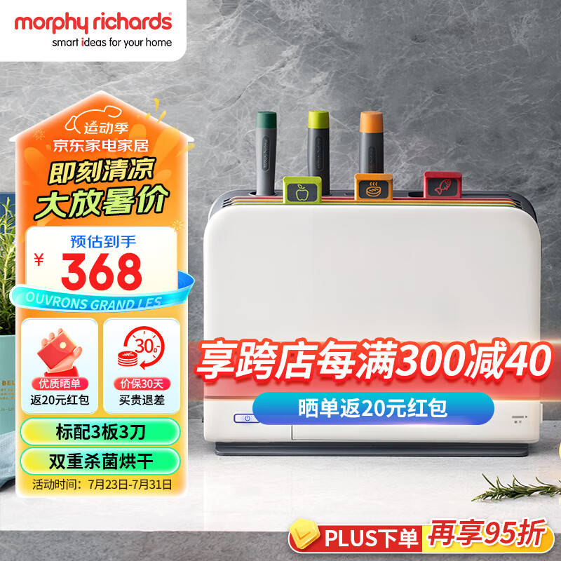 摩飞电器(Morphyrichards)消毒刀架 砧板刀具消毒机 紫外线消毒厨具烘干器 筷子消毒烘干一体机 菜板分类刀具套装MR1001价格:407.00元!