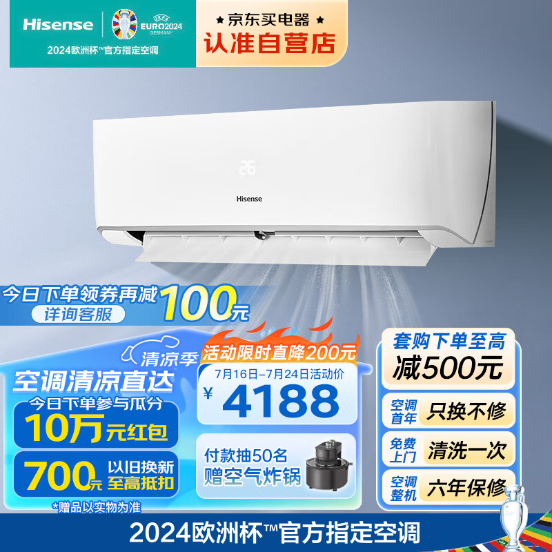 海信(Hisense)空调3匹新一级能效变频快速冷暖WIFI智能自清洁家用壁挂式空调挂机 KFR-72GW/K220D-A1以旧换新价格:4188.00元!