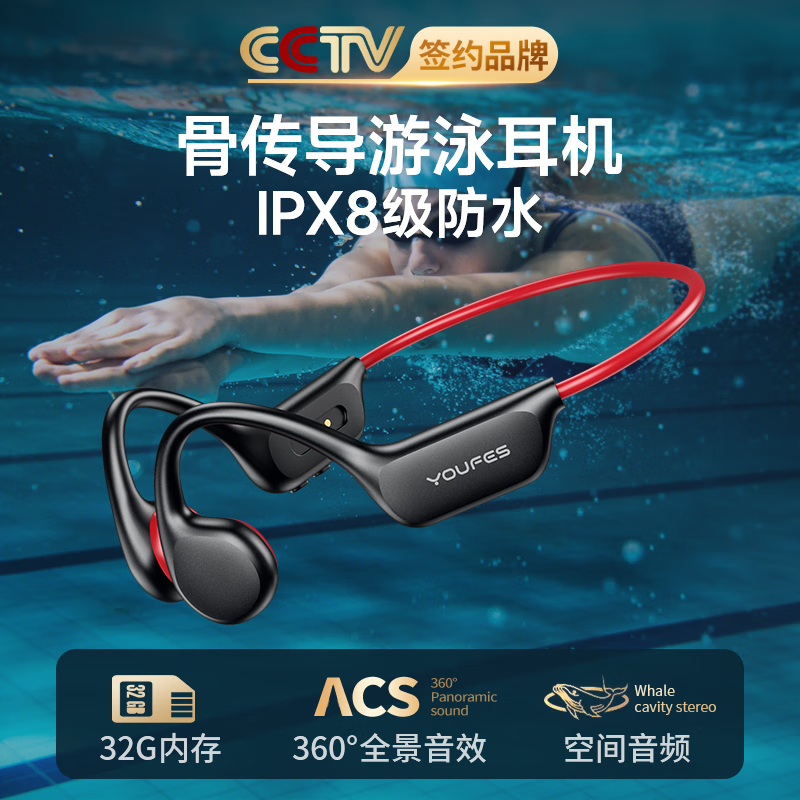 漾菲斯骨传导游泳耳机蓝牙耳机无线运动跑步专用挂耳式ipx8级防水自带内存水下不入耳MP3通用华为小米价格:248.00元!