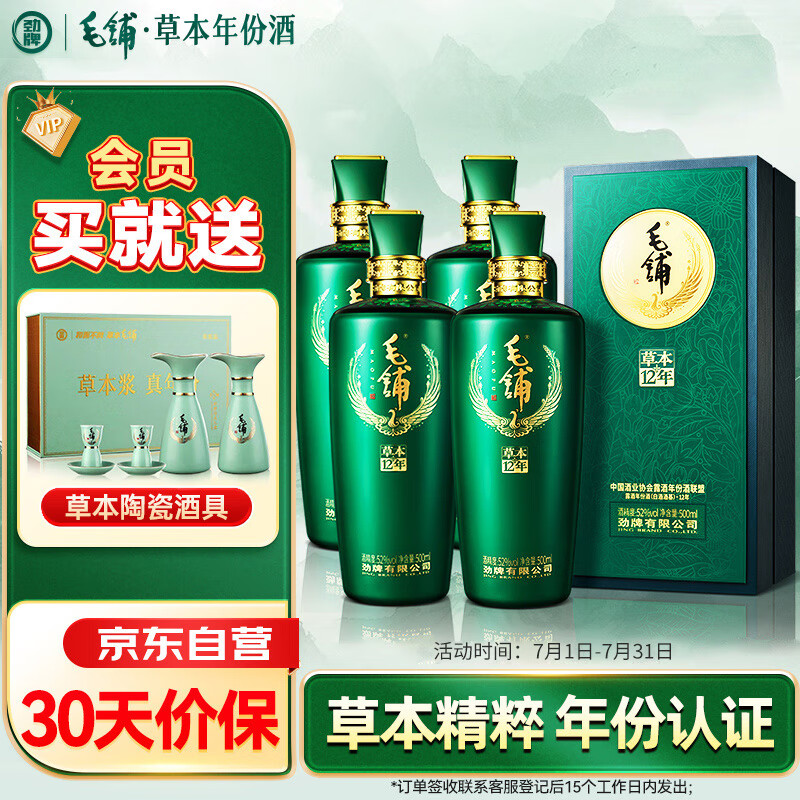劲牌 毛铺苦荞酒 露酒 草本真年份 12年52度 500ml*4整箱价格:2760.00元!