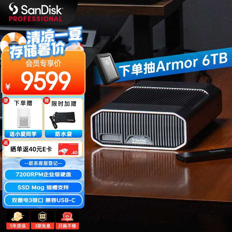 闪迪大师极客 致捷 22TB 企业级桌面移动硬盘机械硬盘 雷电3兼容USB Type-C 3.5英寸大容量读写速度260MB/S价格:9599.00元!