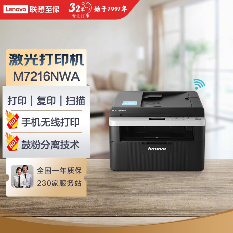 商品名称:联想M7216NWA黑白激光一体机(打印复印扫描)