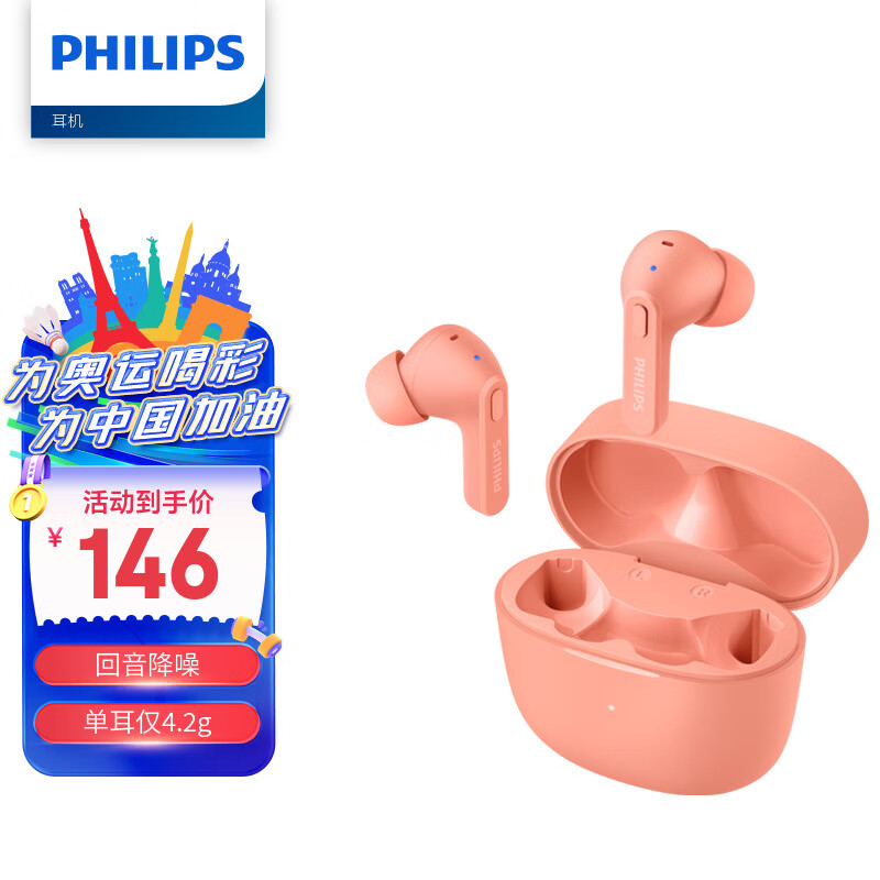 飞利浦(PHILIPS)真无线蓝牙耳机无线运动耳机游戏耳机回音降噪CD级高清音质苹果华为手机TAT2206粉价格:146.00元!