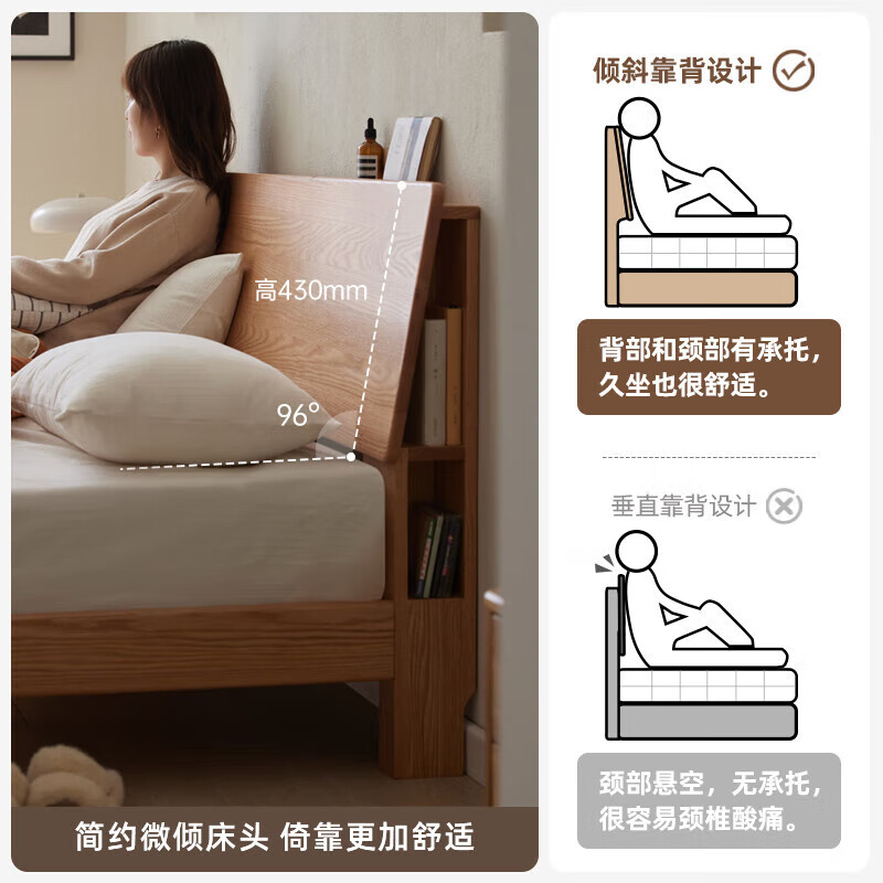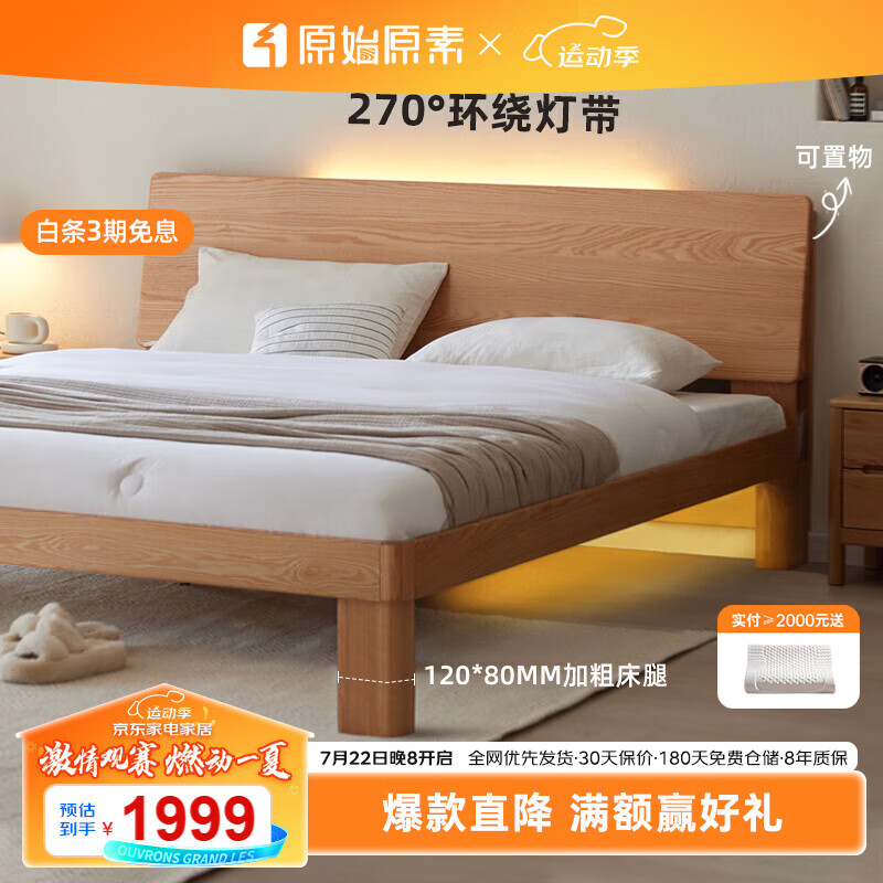 原始原素实木床现代简约1.5米橡木大床北欧夜灯双人床JD1857-高体价格:2666.00元!