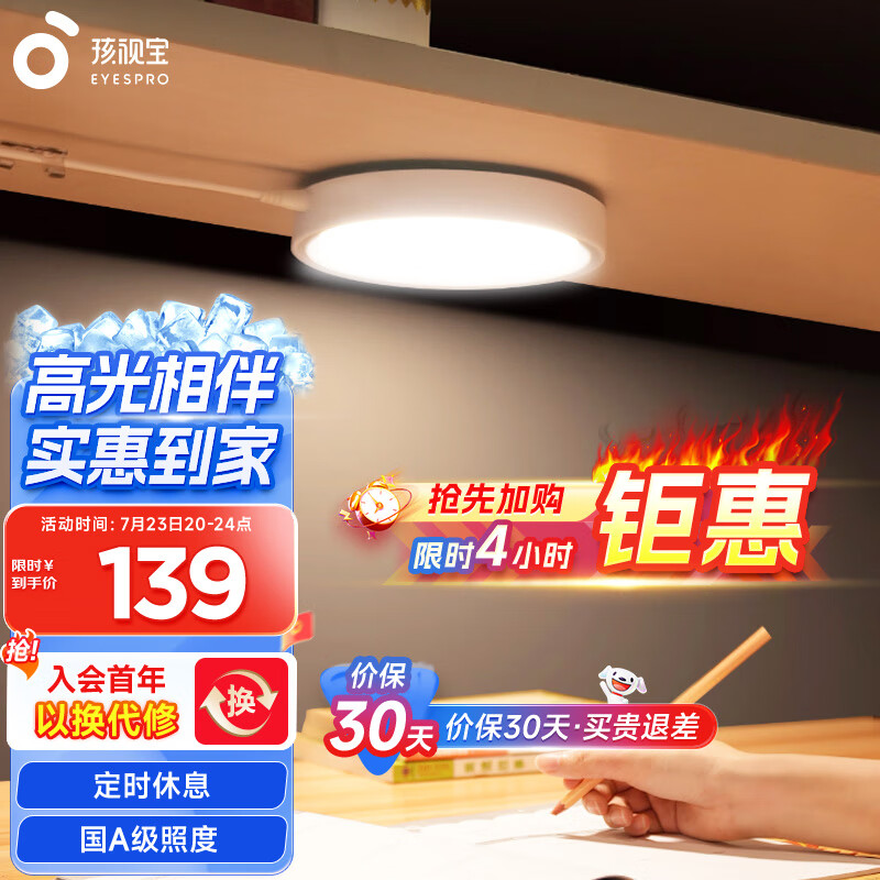 孩视宝台灯护眼学习专用卧室床头阅读便携磁吸护眼灯AC27-W价格:199.00元!